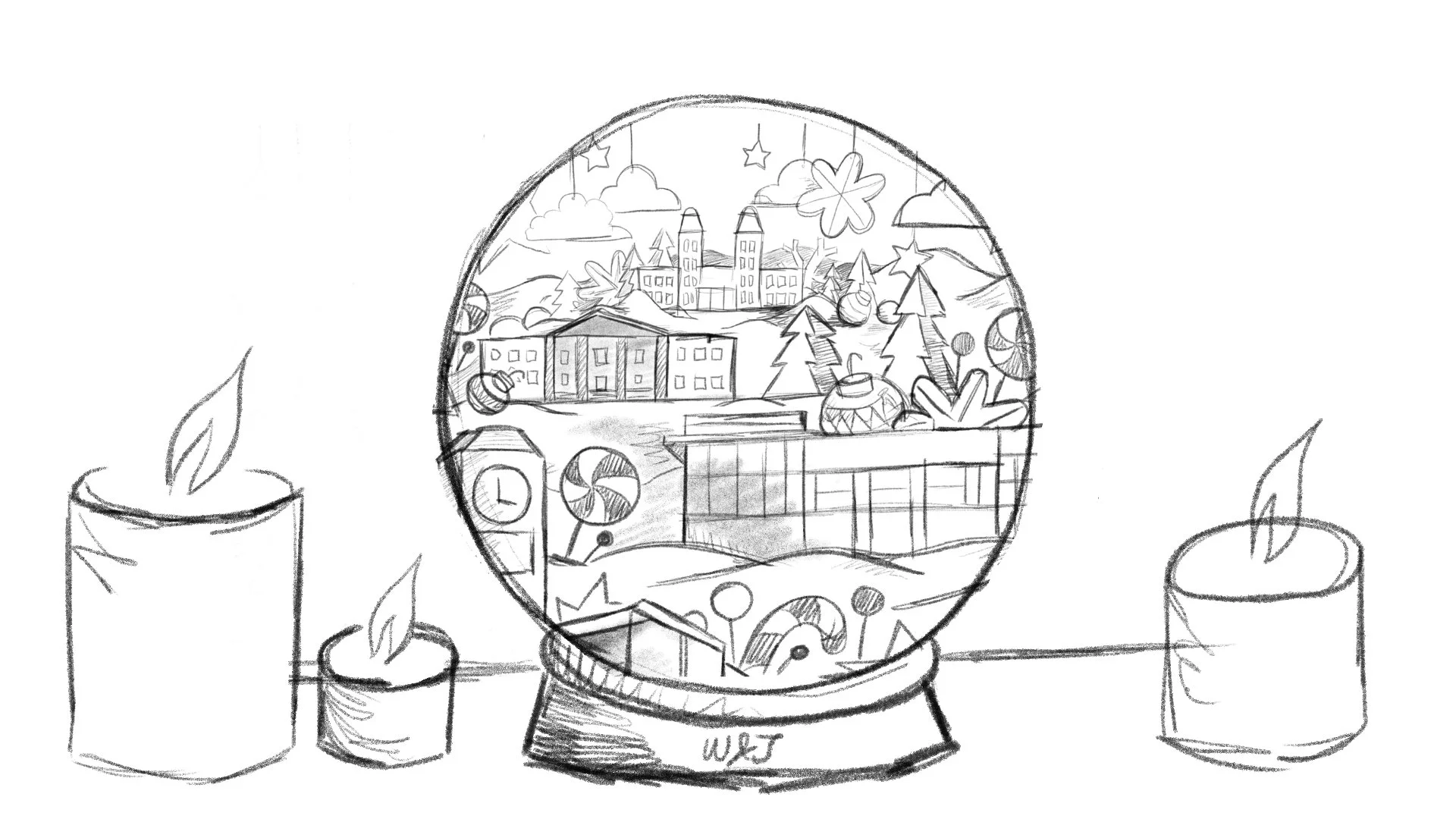 What we came up with is an award-winning whimsical papercraft W&J living inside of a snow globe. Oversized holiday elements sprinkled among campus buildings come to life with falling snow and a soundtrack of campus holiday traditions.